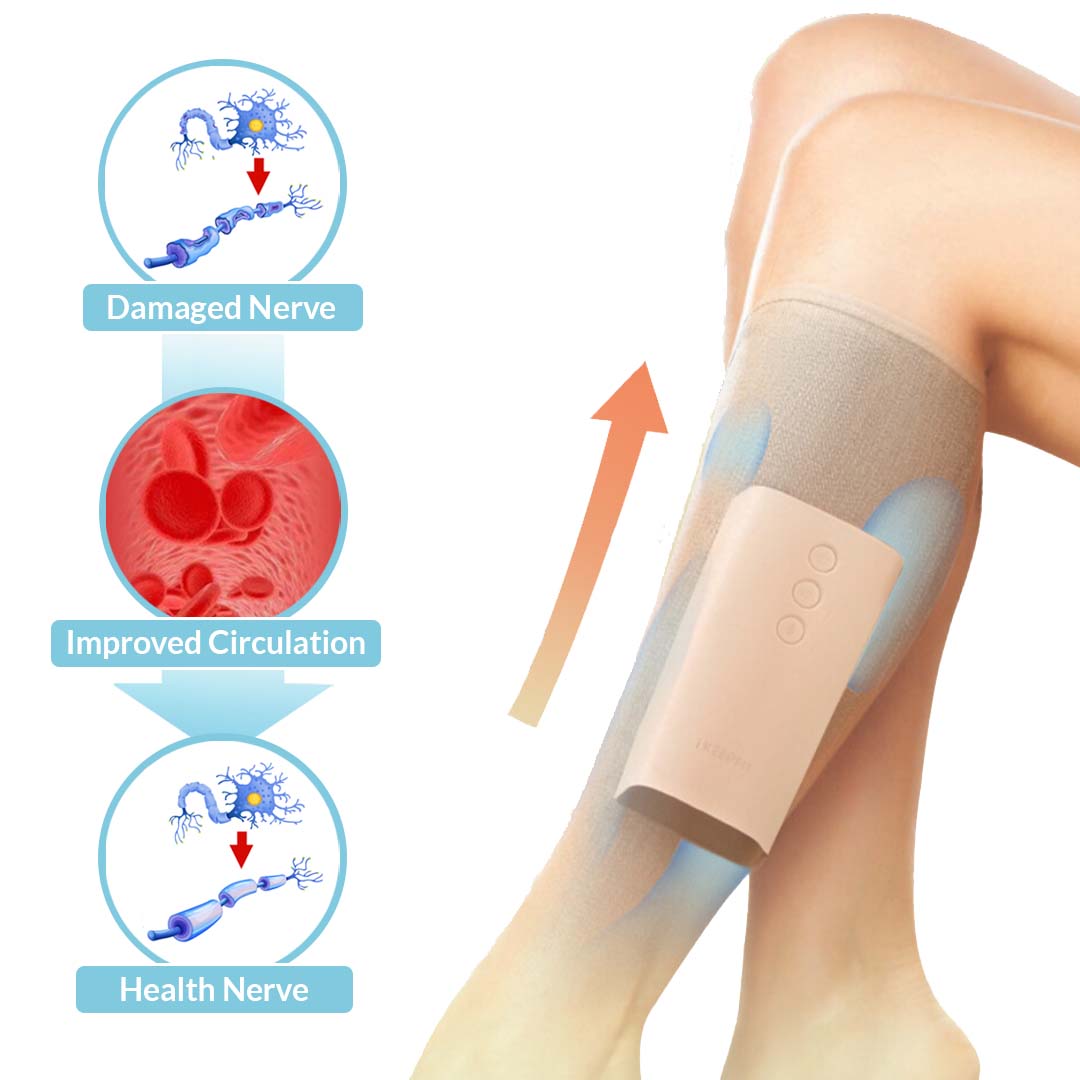 • Heat: Heat therapy dilates blood vessels in the legs, increasing circulation which boosts oxygen and nutrient delivery to tissues. This enhanced blood flow aids in the repair of damaged nerves, providing relief from discomfort and accelerating recovery.